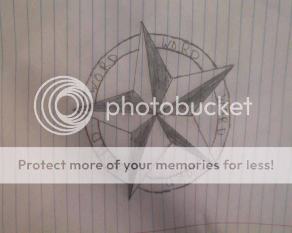 Okay so getting a Nautical Star with a circle in the background of it… ( Look at Pics ) But i need FIVE WORDS to put in it ( Each open space of the star, on the circle )