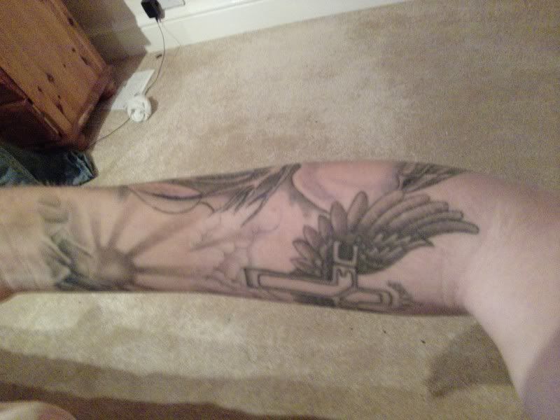 Would just like some ideas on what i could use to blend it all together more etc. its on the forearm so kind of hard to show it all in a picture, but you will get the idea.